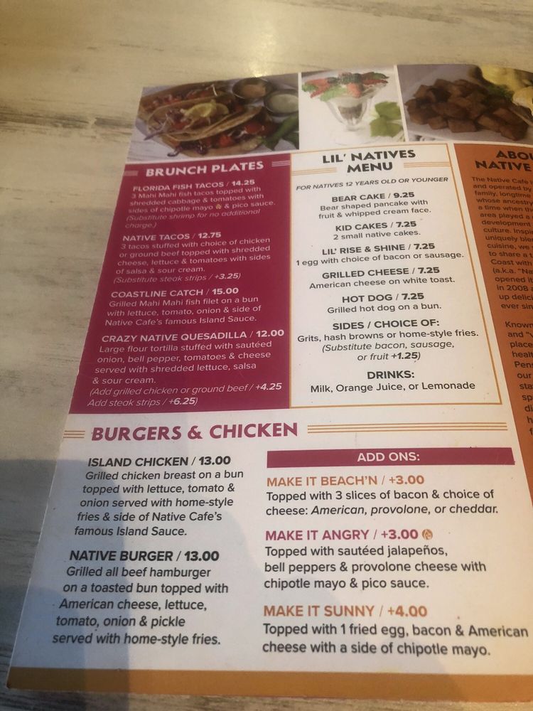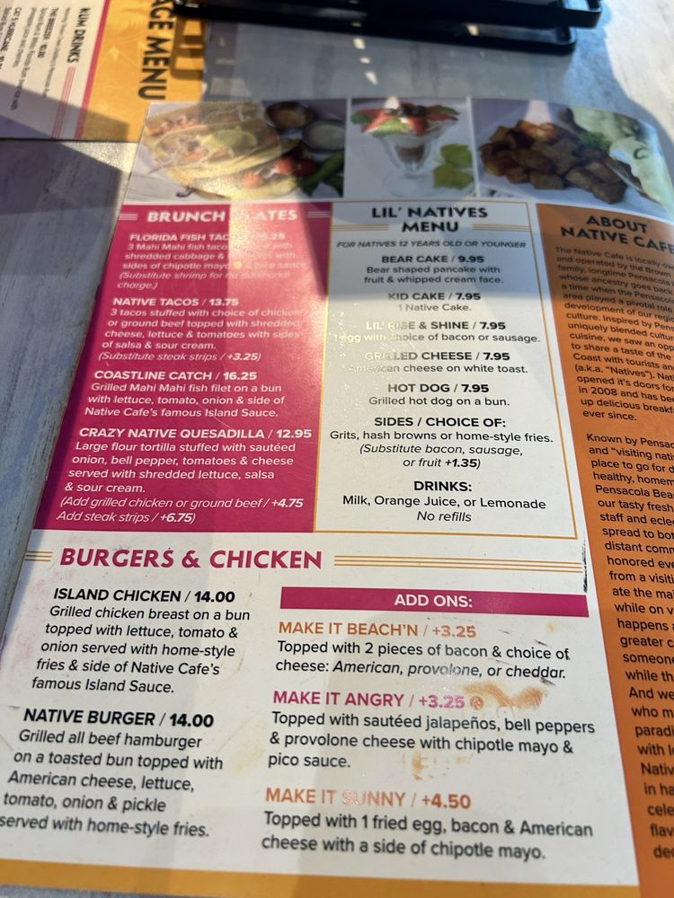 Welcome to Native Cafe, a delightful American eatery situated on the scenic Pensacola Beach. This vibrant cafe is a haven for food lovers, offering a diverse menu that celebrates the best of breakfast, brunch, and lunch. Guests rave about the iconic Crab Cakes Benedict, perfectly complemented by a rich hollandaise sauce, and the thoughtfully crafted Seafood Omelet bursting with fresh flavors.